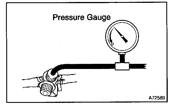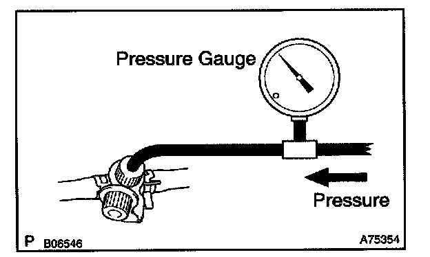 b. Pressurize and make the internal pressure in the fuel tank 4 kPa (41 gf/sq.cm, 0.58 psi).