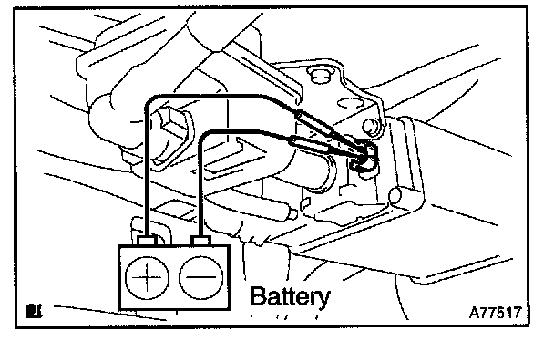 2. Connect the positive (+) and negative (-) leads from the battery to the VSV for EVAP terminals.