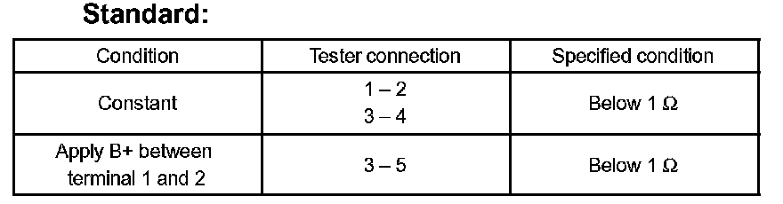 If the value is not as specified, replace the relay assy (for heater blower motor).