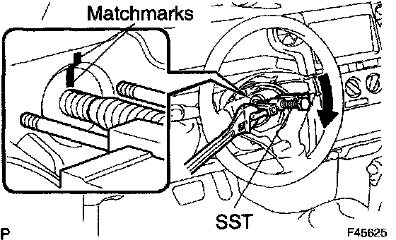 c. Put matchmarks on the steering wheel assy and main shaft assy.