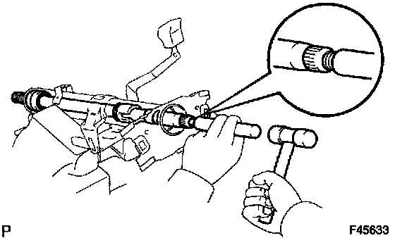 b. Using a brass bar and a hammer, remove the steering main shaft assy and steering main shaft bearing.