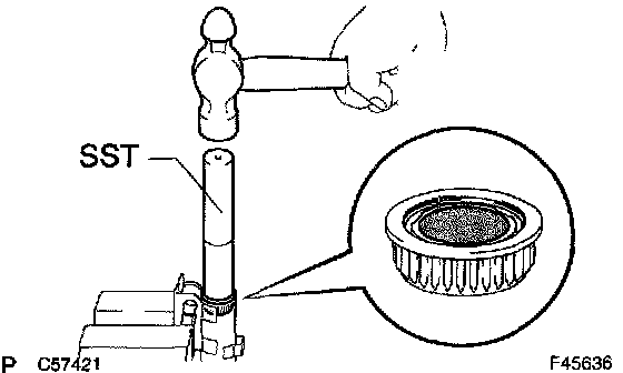 a. Using SST and a hammer, install a new steering main shaft bearing.