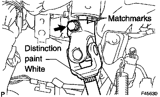 NOTICE: Install the intermediate shaft assy with the distinction paint facing the steering column assy side.