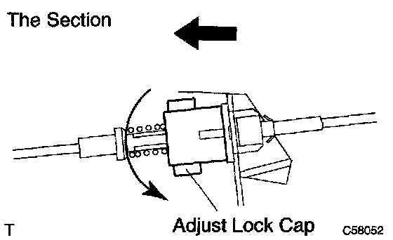 i. Rotate adjust lock cap shown in the illustration counterclockwise by 90° facing the front of the vehicle.