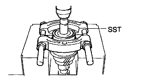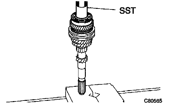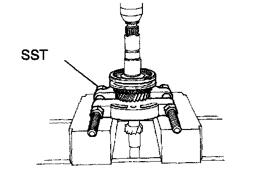 b. Using SST and a press, remove the input shaft rear radial ball bearing and 4th gear from input shaft.