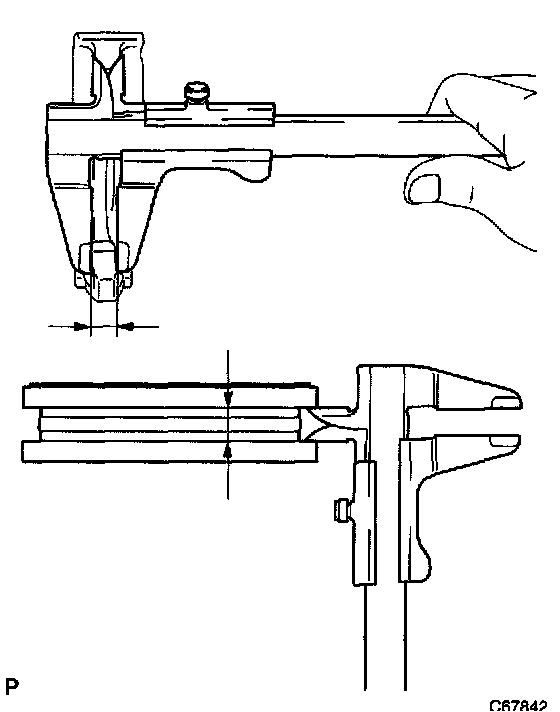 c. Using vernier calipers, measure the clearance between the transmission hub sleeve No.2 and gear shift fork No.2.