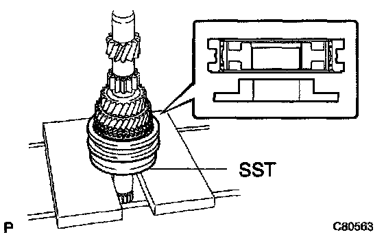 NOTICE: Fit the synchromesh shifting key into the groove of the synchronizer ring correctly.