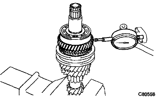 a. Using a dial gauge, measure the radial clearance between the 4th gear.