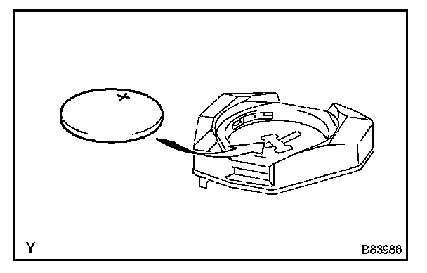 a. Install a new battery (lithium battery) with the positive (+) side up, as shown in the illustration.