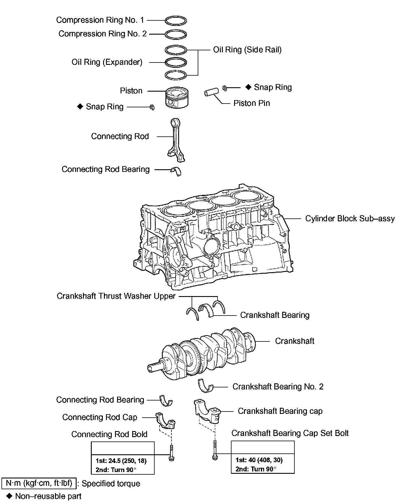 f. Retighten the bearing cap bolts 90° in the same sequence as step (d).