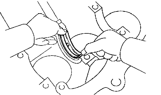 a. Apply engine oil to the upper bearing, and install the crankshaft onto the cylinder block.