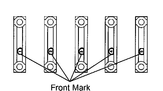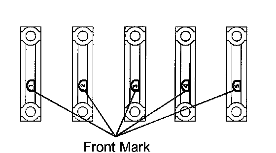 g. Examine the front marks and numbers and install the bearing caps onto the cylinder block in the sequence order shown in the illustration.