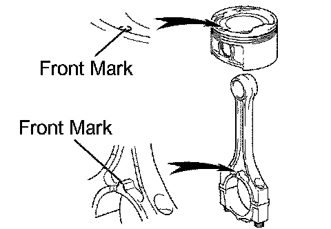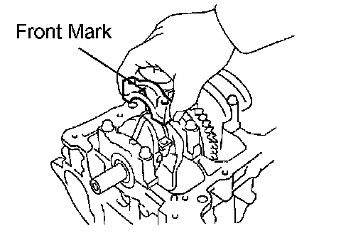 d. Check that the front mark of the connecting rod cap is facing in the correct direction.