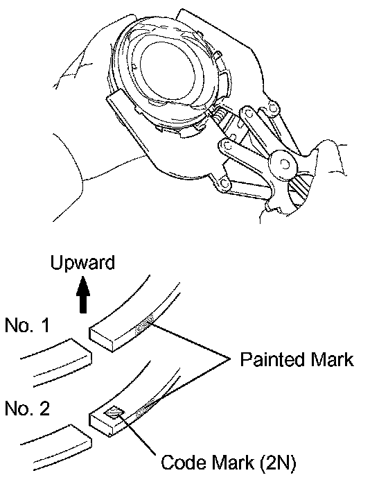 NOTICE: Install compression ring No. 2 with the code mark (2N) facing upward.