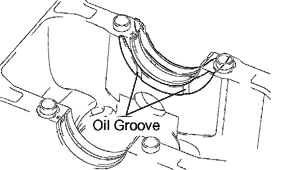 c. Install the upper bearing with an oil groove onto the cylinder block.
