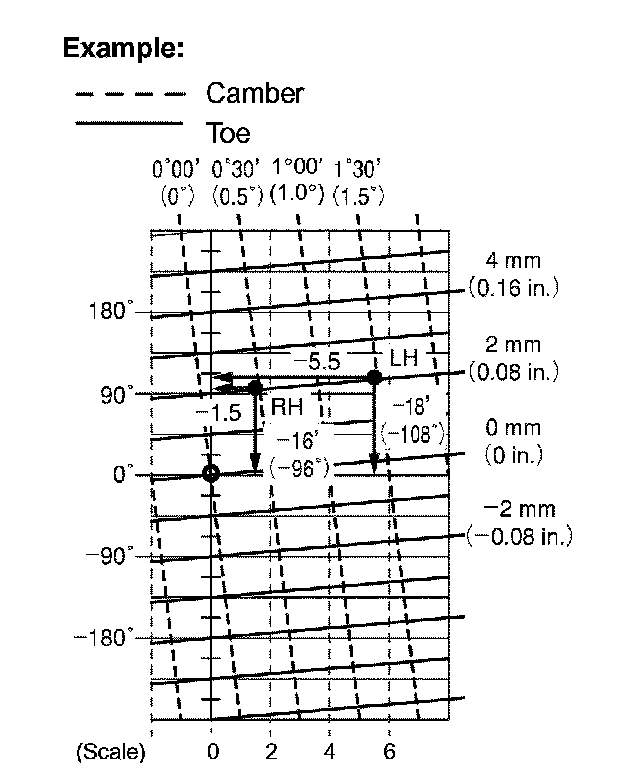 HINT: Adjust the camber and toe-in to the center of the specified ranges as much as possible.