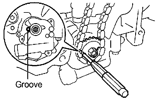 g. Align the adjusting hole of the oil pump drive shaft gear with the groove of the oil pump.