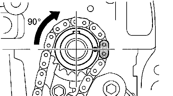 i. Turn the crankshaft clockwise by 90° to position the crankshaft key upward.