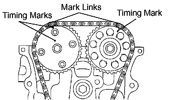 d. Align the gold or yellow mark links with each timing mark located on the camshaft timing gears, then install the chain.