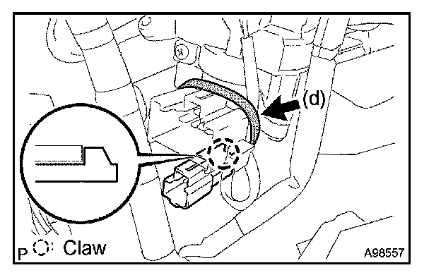 c. Align the claw position, then install the connector of the unlock warning switch.