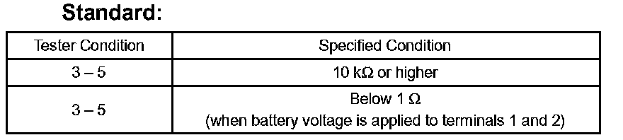 If the result is not as specified, replace the relay.