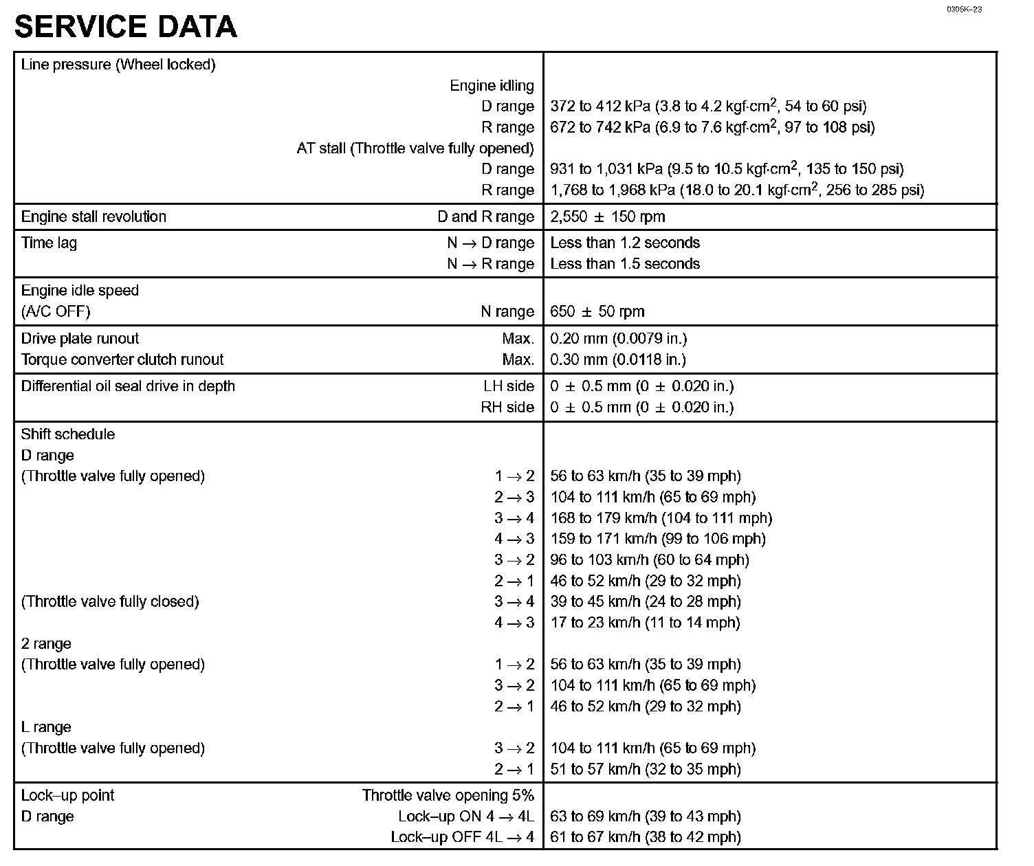 Automatic Transmission / Transaxle - Service Data: