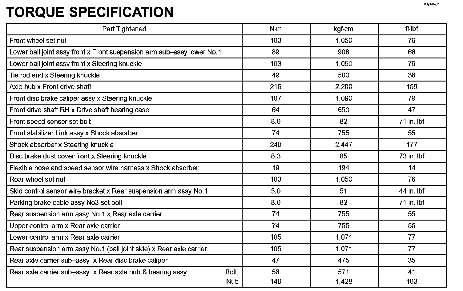 Drive Shaft / Propeller Shaft / Axle - Torque Specification: