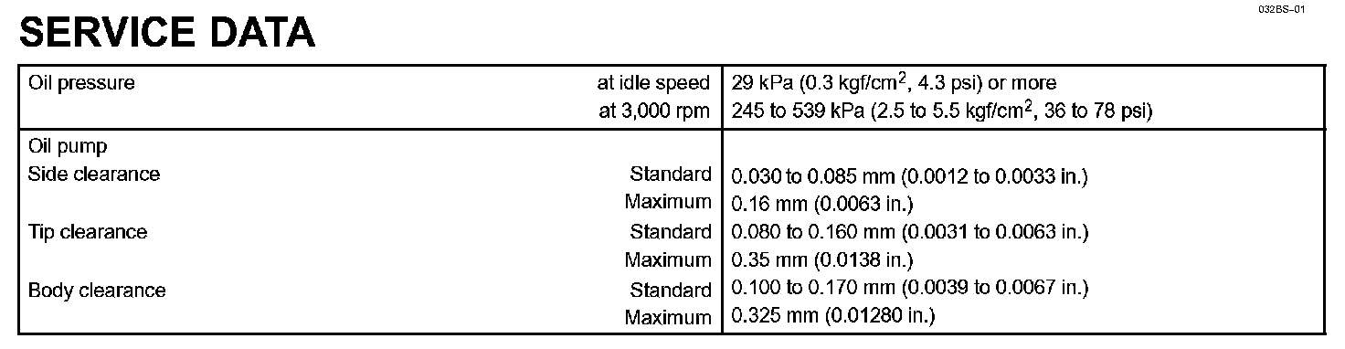 Lubrication - Service Data: