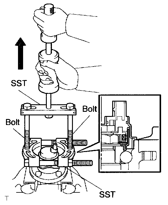 b. Using a pin punch and a hammer, drive out the 2 pins, and remove the 2 attachments from SST.