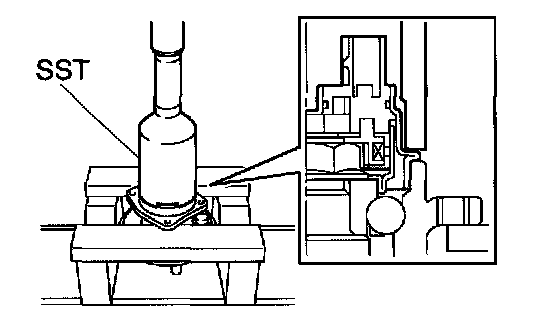 c. Using SST and a press, install the skid control sensor on the rear axle hub.