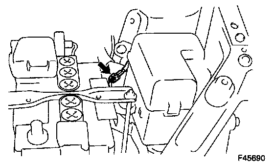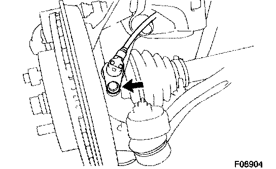 b. Remove the 2 clamp bolts holding the speed sensor wire harness from the body and the shock absorber.