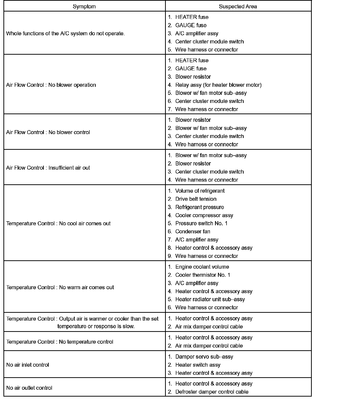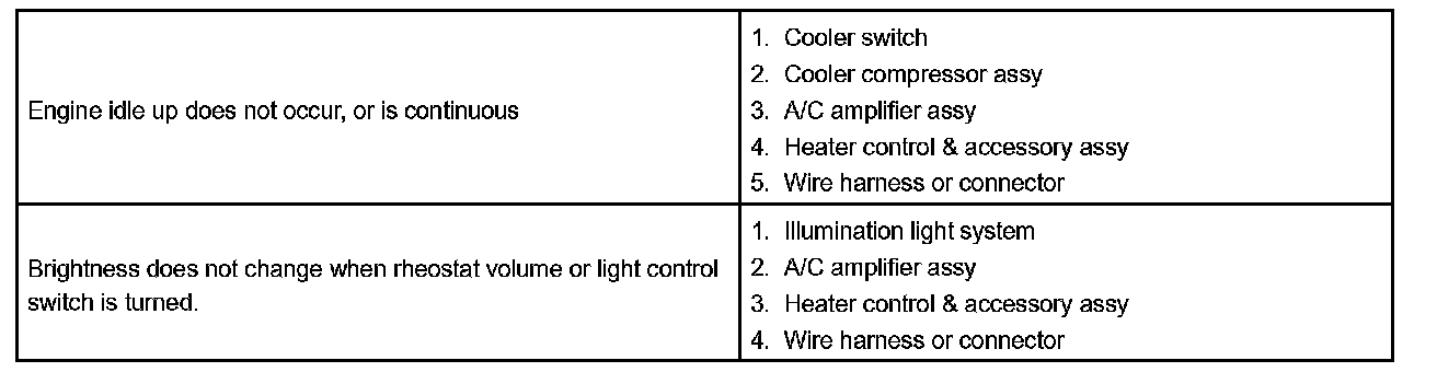 Problem Symptoms Table - Air Conditioning System Part 2: