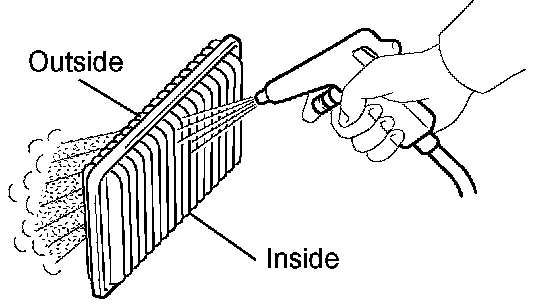 c. Clean the filter with compressed air. First blow from the inside of the filter thoroughly then repeat from the outside.