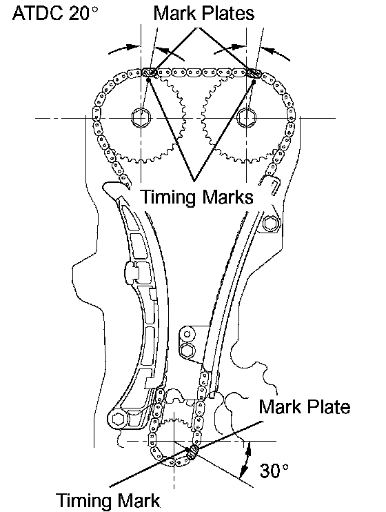 a. After setting the crankshaft at ATDC 40 to 140°, set cams of intake and exhaust timing sprockets at ATDC 20° and then reset the crankshaft at ATDC 20°.
