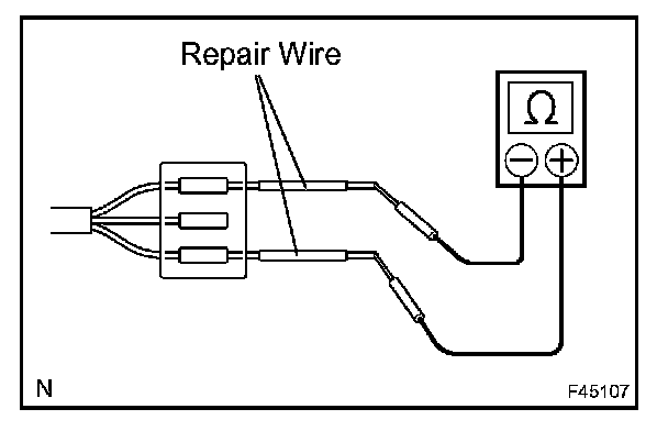 b. If checking the resistance from the back of the connector is not possible, use a repair wire to check it.