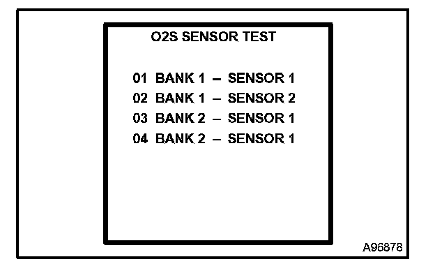 h. Select the desired HO2 sensor from the list and press the ENTER button (a screen such as that shown on the left appears).