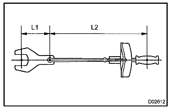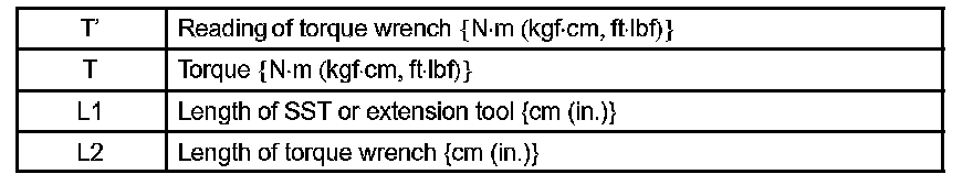 2. Use the formula below to calculate special torque values for situations where SST or an extension tool is combined with the torque wrench.