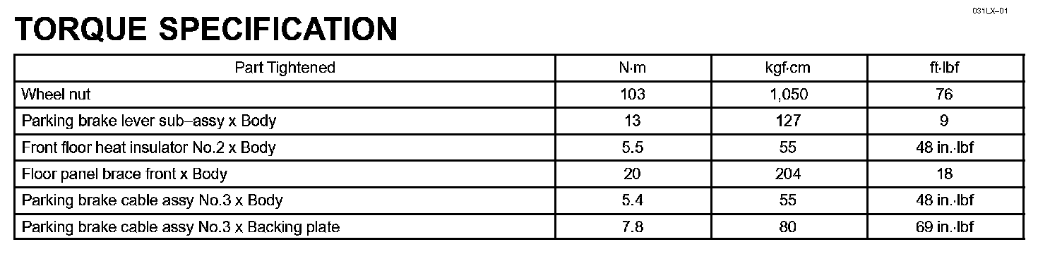 Parking Brake - Torque Specification: