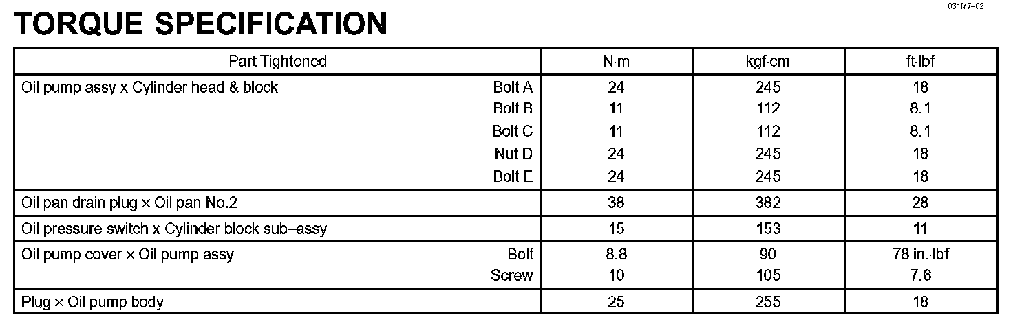 Lubrication - Torque Specification: