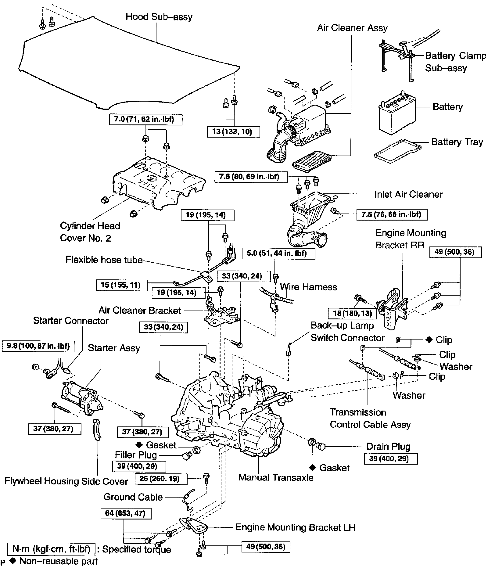 a. Remove the 7 bolts and the manual transaxle from the engine.