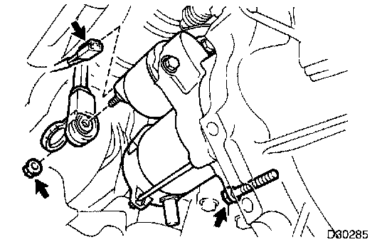 d. Remove the 2 bolts and the starter assembly.
