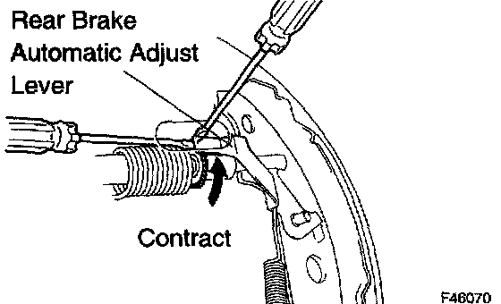 c. Using another screwdriver, compress the brake shoe adjuster by turning the adjusting wheel.