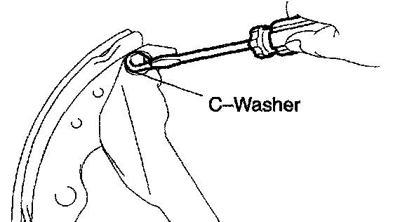 a. Using a screwdriver, remove the C-washer and the parking brake shoe lever.