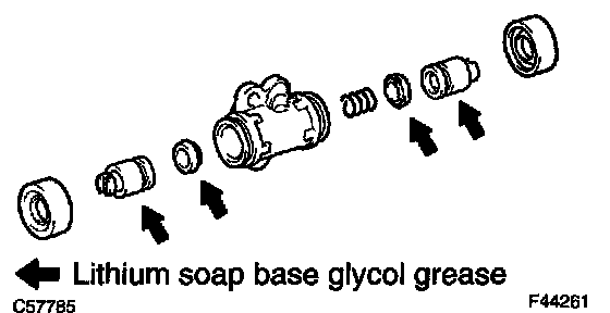 a. Apply lithium soap base glycol grease to new 2 wheel cylinder cups and the 2 pistons.
