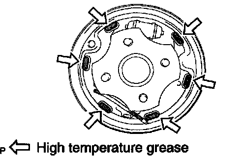 a. Apply high temperature grease to the shoe attached surface of the backing plate.