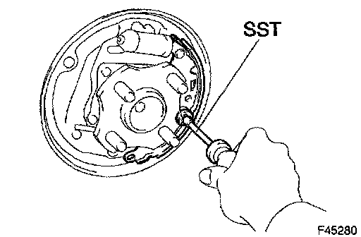 a. Using SST, disconnect the shoe return spring from the front brake shoe and the rear brake shoe