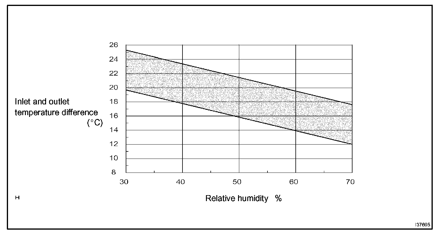 *1. For example, when the difference between temperatures measured in the inlet and outlet is 17 degrees Celsius and the relative humidity is 60%, the intersecting point is within the diagonal range.