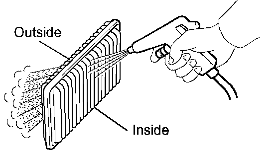 c. Clean the filter with compressed air. First blow from the inside of the filter thoroughly then repeat from the outside.
