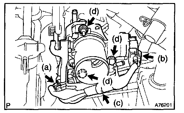 d. Remove the bolt and 2 nuts, then remove the accelerator control cable bracket and throttle body.