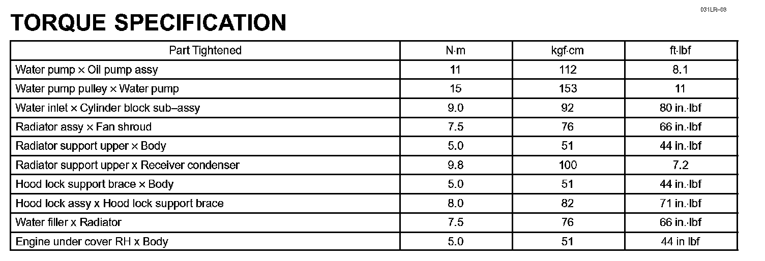 Cooling - Torque Specification: